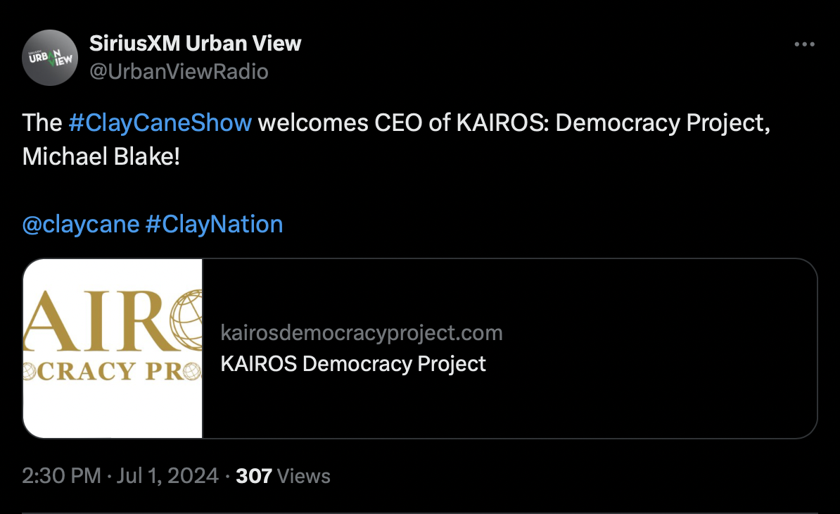 The #ClayCaneShow welcomes CEO of KAIROS: Democracy Project, Michael Blake